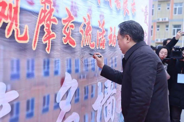 经过铺有厚实红地毯的门前,观摩团人员来到书写着会议主题“知声腔国粹,爱家乡文华”的签名墙前,纷纷驻足,留下自己的签名。大家都希望能为戏曲文化的传承和发展贡献自己的一份力量。