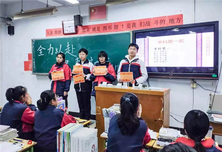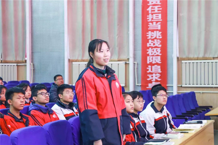 接着,史老师对在上次月考中成绩优异的学生进行了表扬,并邀请学生代表上台分享学习方法。