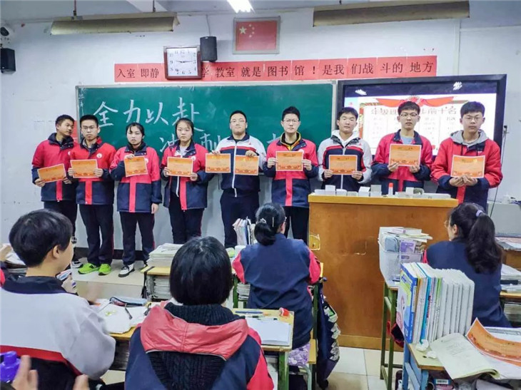 班会课的最后,学生范豪为大家带来了励志分享,一直努力,一定成功,这绝不仅仅是口号!同学们在范豪的感染下,喊出了自己的铿锵誓言:“我要成功!我能成功!我必成功!挑战自我,超越自我,绝不认怂,永不言败!加油,加油,加油!埋头苦学,必定有我,蟾宫折桂,舍我其谁!必胜,必胜,必胜!”铿锵的誓词是同学们挑战自我,永攀高峰的见证,让我们一起期待同学们的成长!