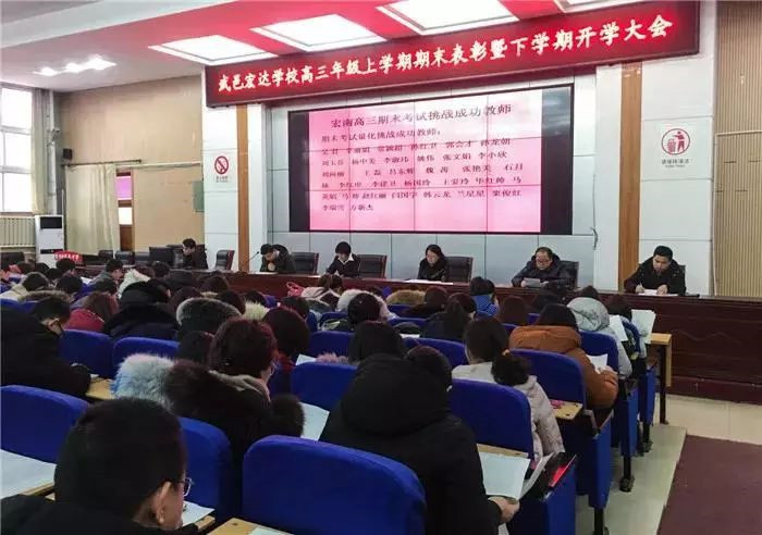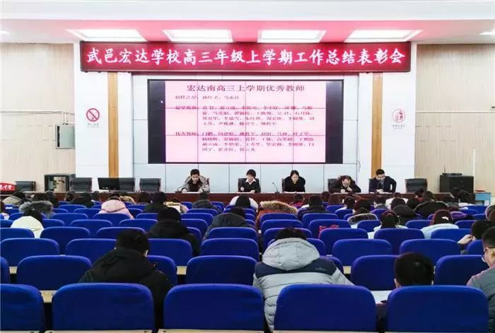 1月24日,我校高一、高二、高三年级分别在报告厅内隆重召开上学期工作总结表彰大会,表彰先进,部署期末安排,鼓舞教师士气。