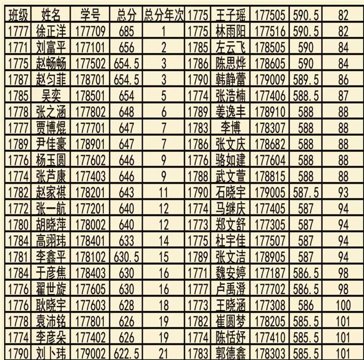 宏达北光荣榜学生名单