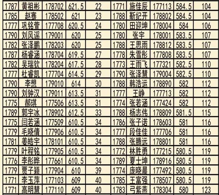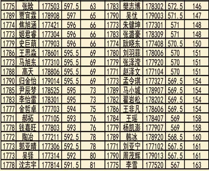 我校高三年级四调考试光荣榜