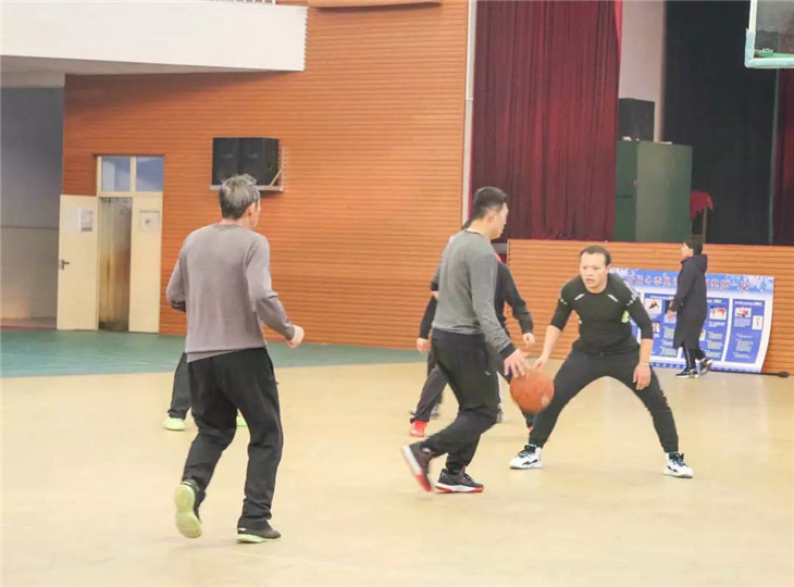 体育馆内,老师们尽情挥洒着汗水,释放激情,与篮球共舞。