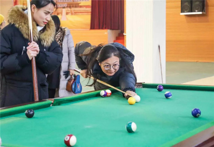 除往年传统的乒乓球、排球、篮球、羽毛球、台球项目外,今年新增冰壶项目。运动会在哨声中正式拉开帷幕,且看平日严肃端庄的老师们在活动中尽显风采。