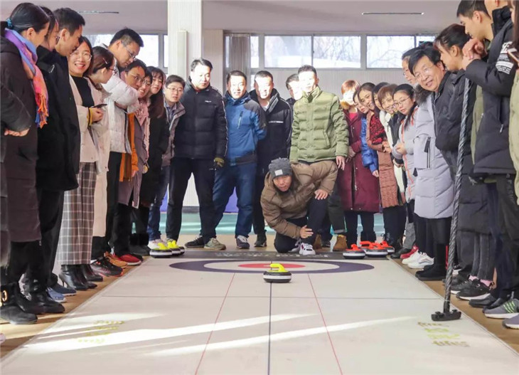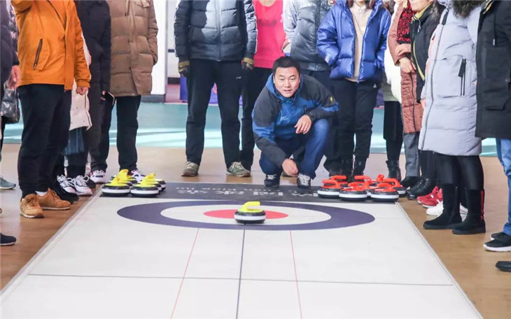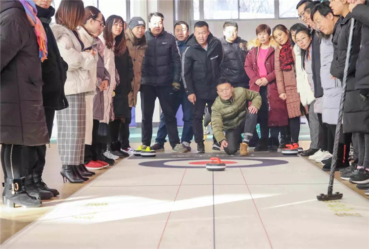 冰壶,今年我校教职工运动会的新型项目,现场教学结束后,老师们跃跃欲试,互展技艺。