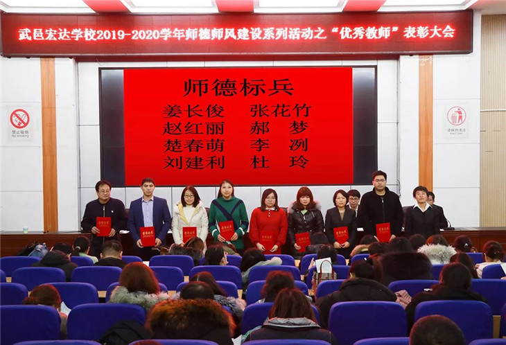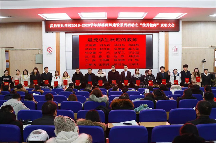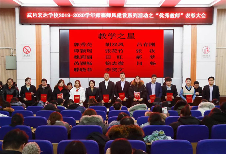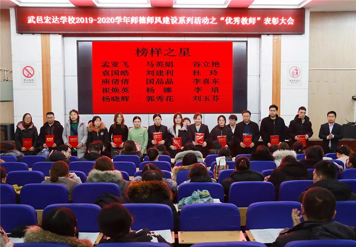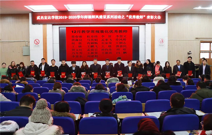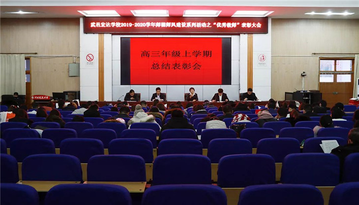 1月15日,我校高三年级在报告厅内隆重召开2019-2020学年师德师风建设系列活动之“优秀教师”表彰大会,高三年级主任邱雪,级部主任崔井旺、田旺、万冬雪及高三年级全体教师参加了此次会议。会议由级部主任闫鹏主持。