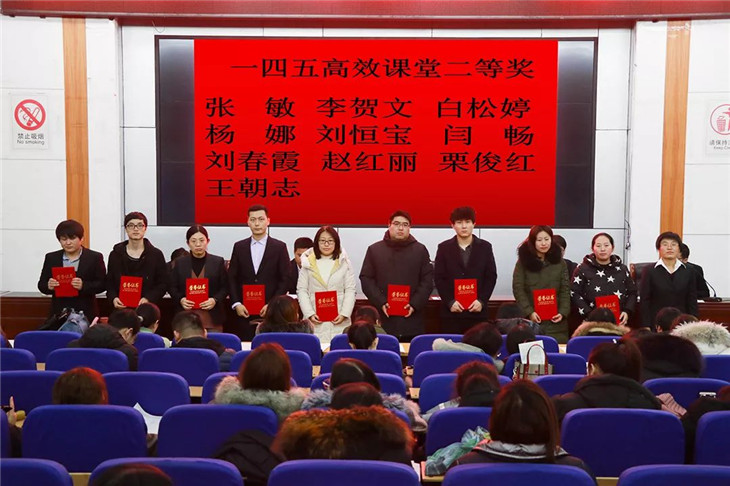 首先,田主任向大家宣读了荣获榜样之星、12月教学常规量化优秀教师、守时标兵、教学之星的教师名单;万主任向大家宣读了荣获最受学生欢迎的教师、师德标兵、高效课堂获奖者,一四五高效课堂二等奖、优秀备课组长、优秀班主任的教师名单。