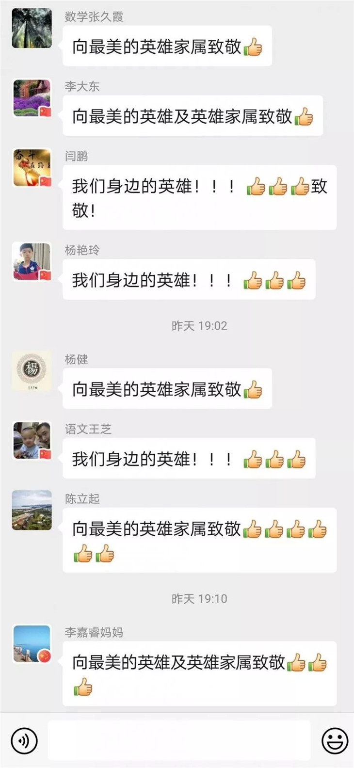 一方有难,八方支援。赵护士长冲锋在抗击疫情第一线的担当与作为,卢老师作为家属的支持与配合,让我们感受到了他们舍小家、顾大家、为国家的昂扬精神风貌,让我们坚定了打赢疫情阻击战的信心,全校师生为赵护士长和卢老师加油点赞。