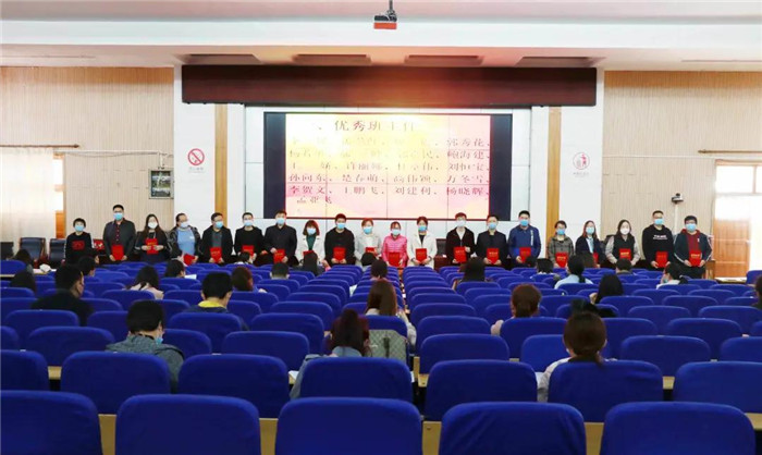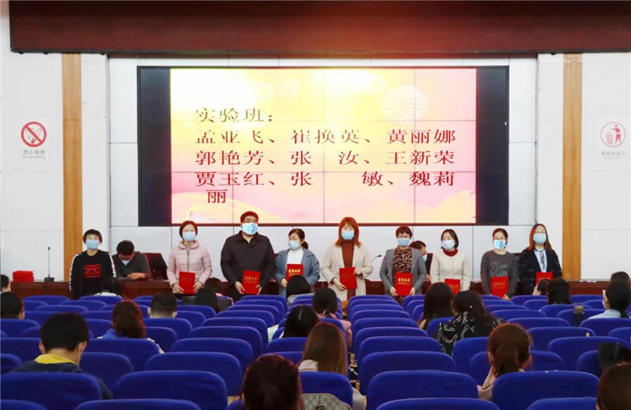 首先,闫主任向大家宣读了荣获优秀班主任、优秀科任老师、优秀学科组长的教师名单。邱主任、万主任、田主任分别为获奖教师颁发荣誉证书。