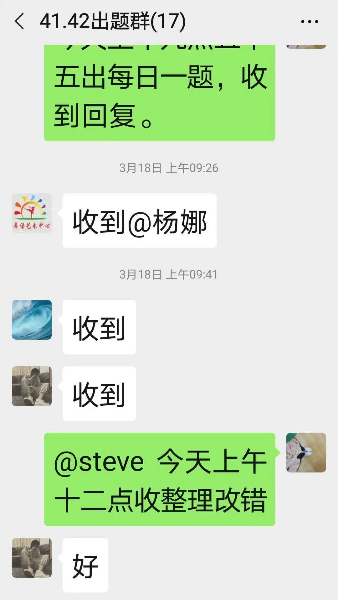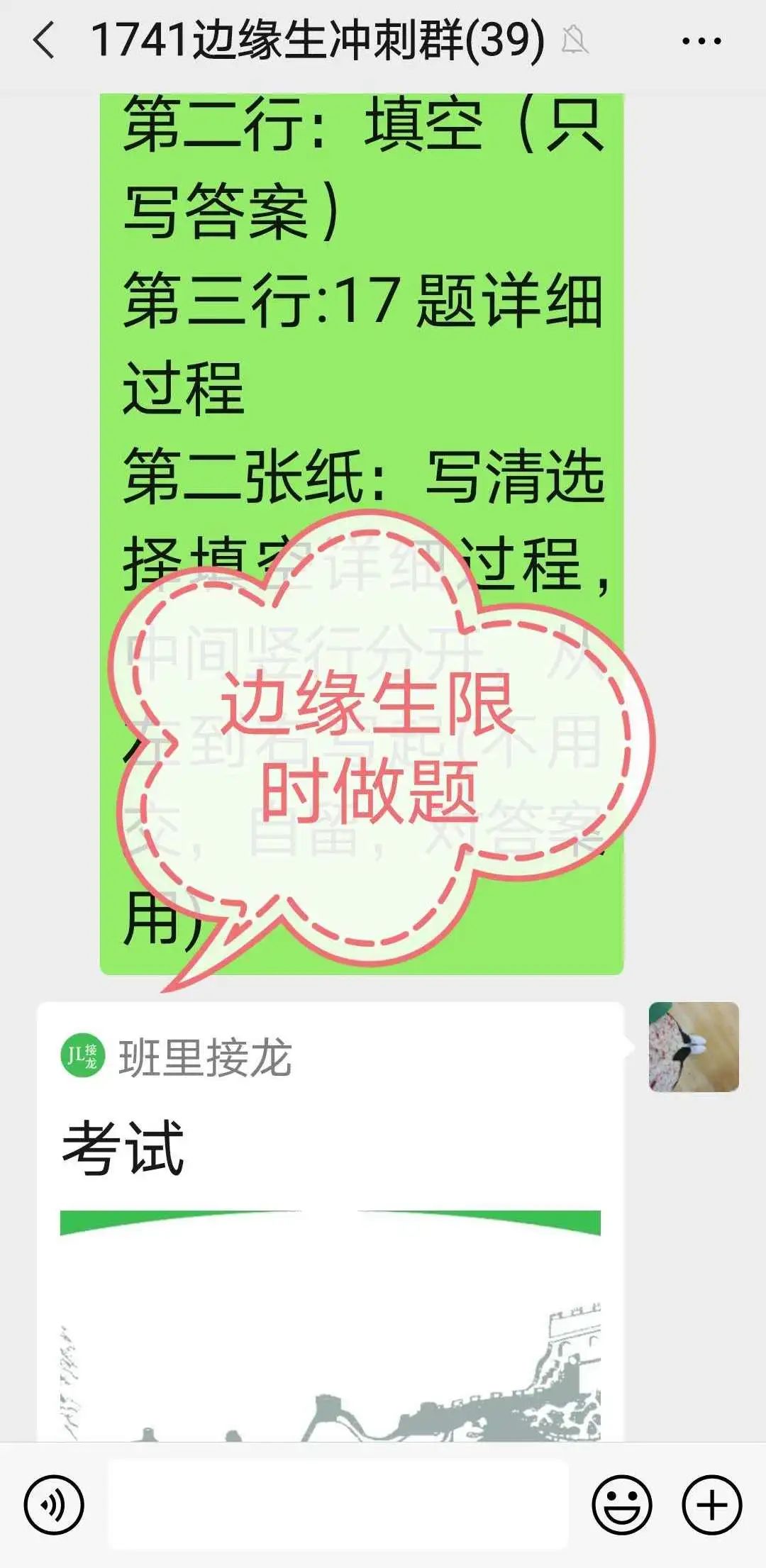 结合学科特点,数学需要多做一些题,杨老师便成立数学群定期发布优秀预测卷,督促学生及时完成。她说:“有一次借用了周六预备课,下课立刻交上作业并批改,效果很好。”