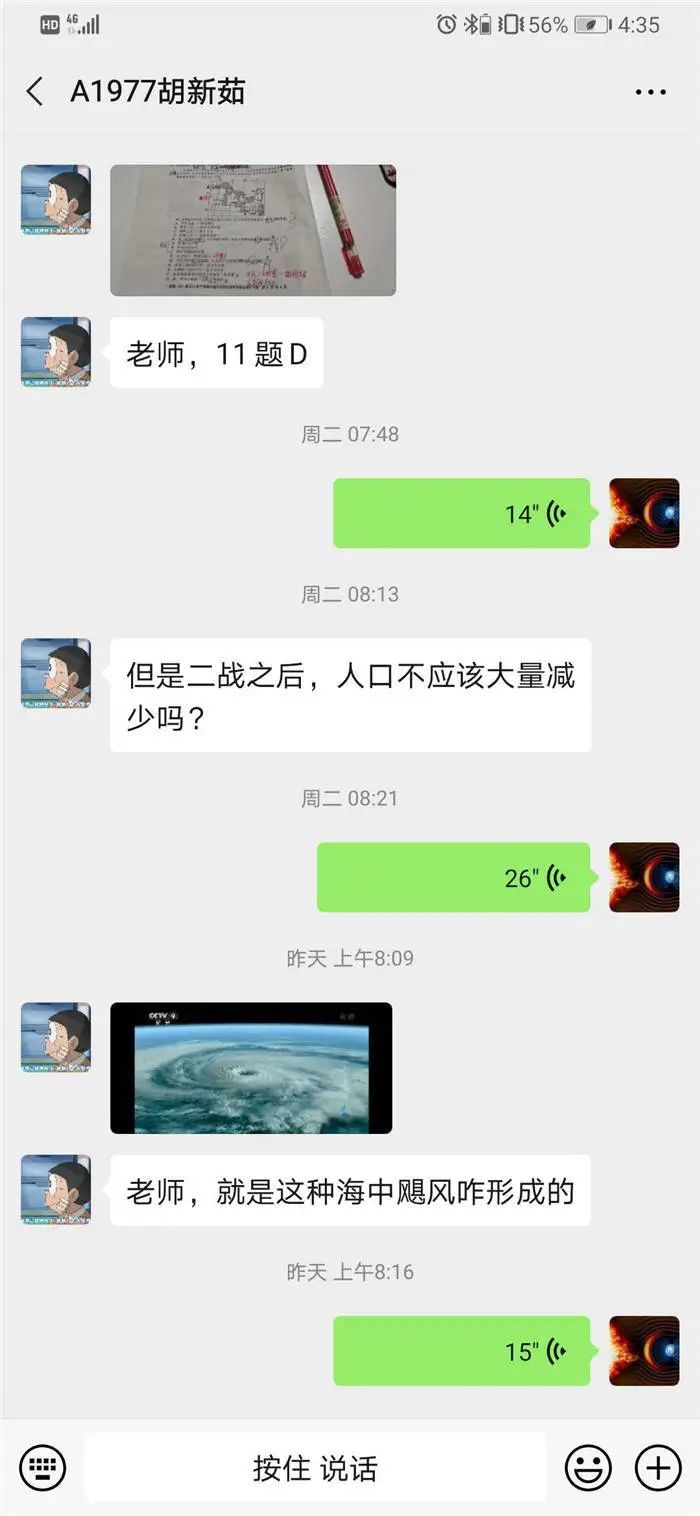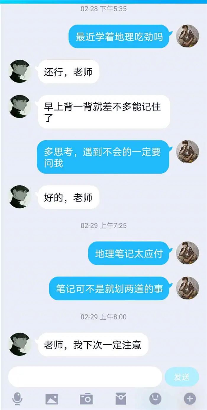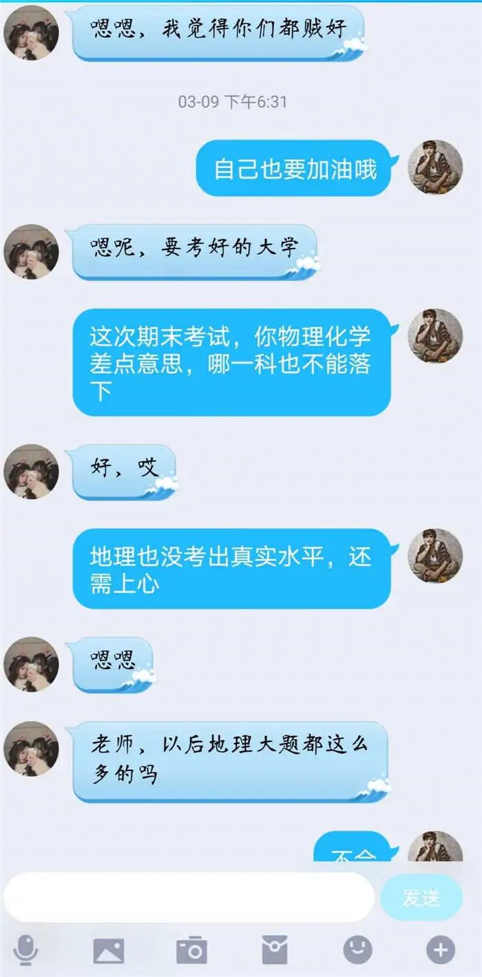 考试过后,与学生交流考试得失,像朋友一般畅所欲言,言语中都是鼓励。用心交流,只为在孩子们成长的路上保驾护航。