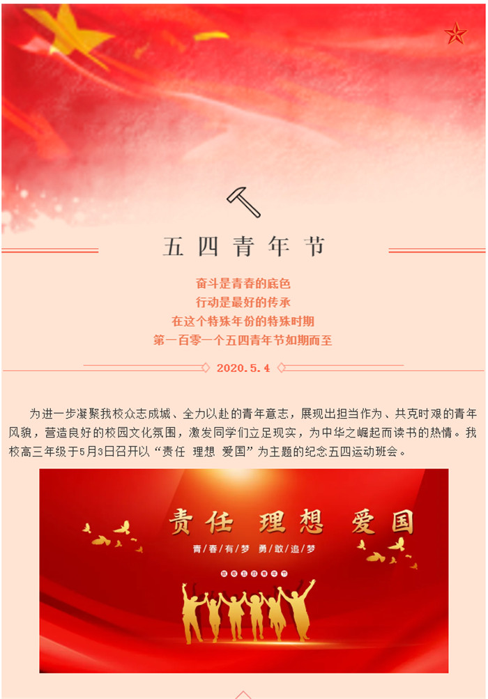 责任 理想 爱国——武邑宏达学校举行纪念五四运动主题班会