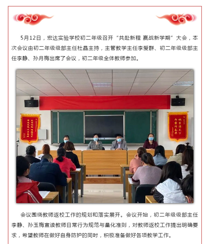 宏达实验学校初二年级召开“共赴新程 赢战新学期”大会