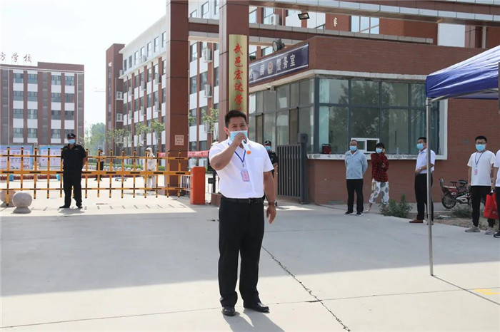 6月1日第三批学校复学在即,为切实做好疫情防控和安全平稳复学两项工作,宏达东方学校于5月29日上午举行复学应急演练活动。武邑县县委书记刘勇,县委副书记侯玉东,县委常委、县委办公室主任陈宝生,县政府副县长鲍建明及我县相关部门领导莅临指导,涉及第三批复学的所有学校校长、幼儿园园长来我校观摩交流。宏达东方学校校长张军、副校长韩铁柱及学校相关主任陪同观摩。