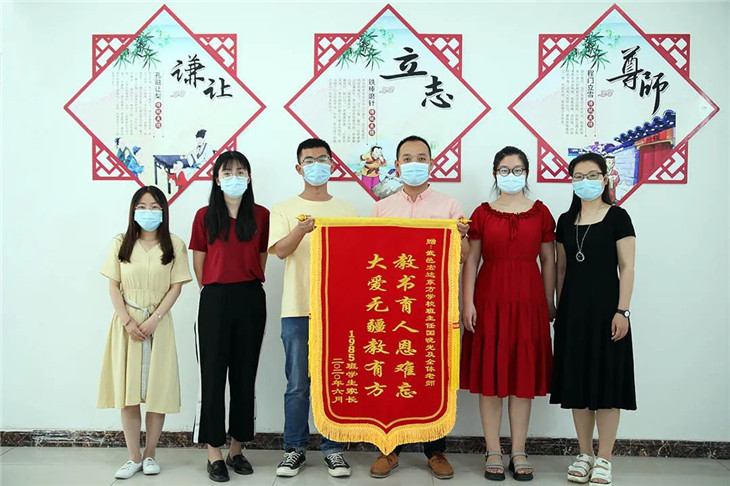 “教书育人恩难忘,大爱无疆教有方”,这是来自学生家长的赞誉与肯定。6月20日,学生家长给1985班班主任国晓光及1985班全体任课老师送来锦旗。