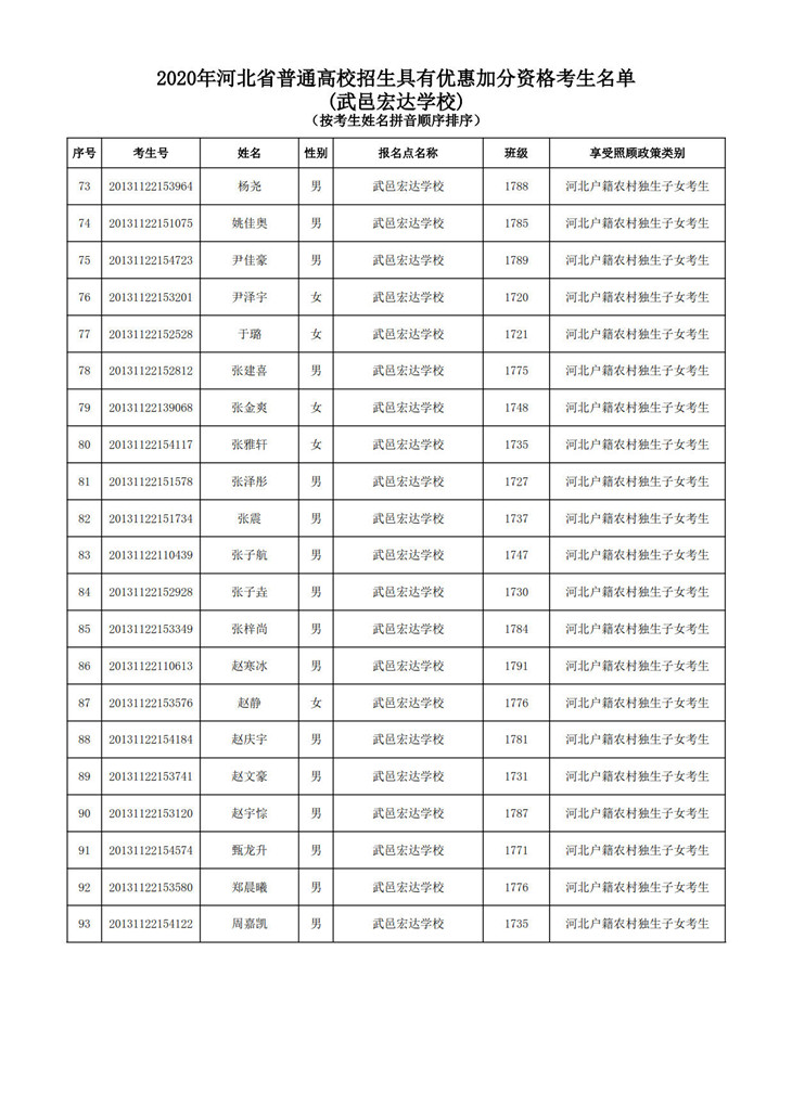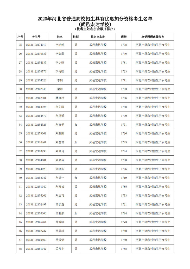 武邑宏达学校地方专项公示名单