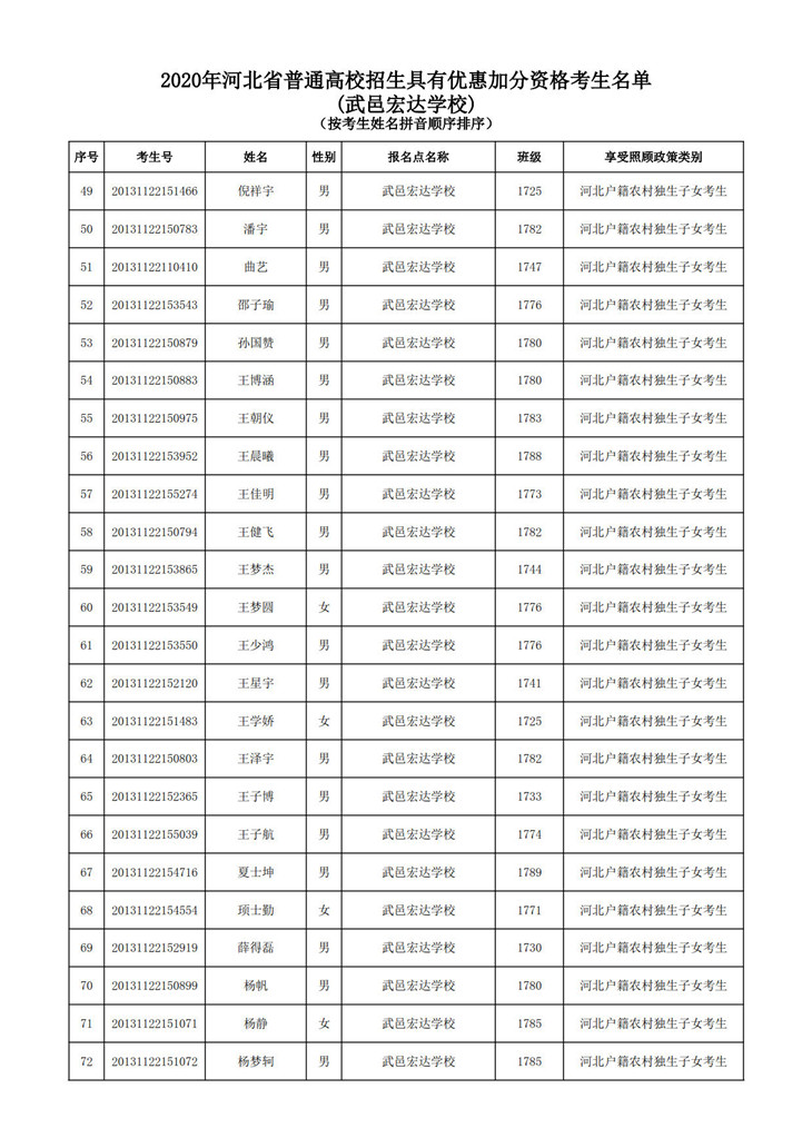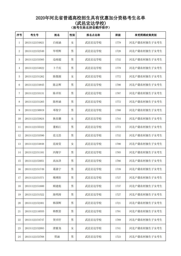 武邑宏达学校国家专项公示名单