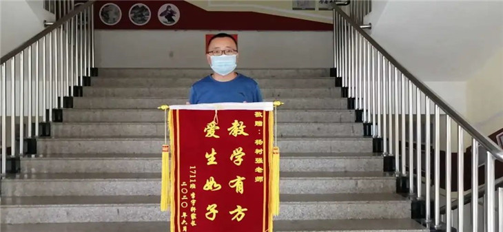 宏达实验学校杨树强老师收到学生家长送来的锦旗