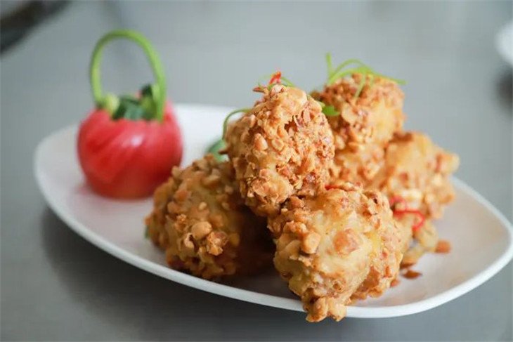 4、核桃仁酥鸡:核桃防止细胞老化,能健脑、增强记忆力、延缓衰老,减少肠道对胆国醇的吸收,缓解疲劳和压力,鸡肉营养丰富,含蛋白质、脂肪、维他命、烟酸及各种矿物质,易被人体吸收利用。