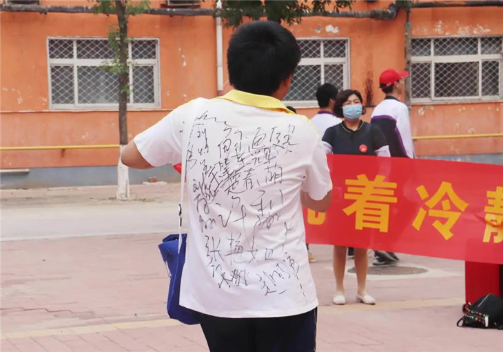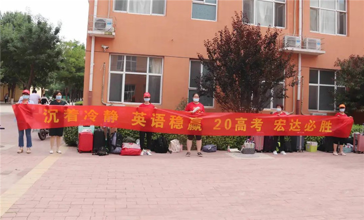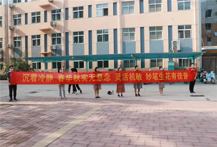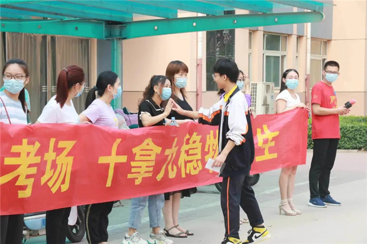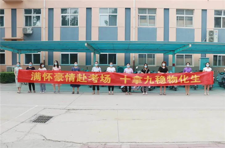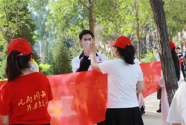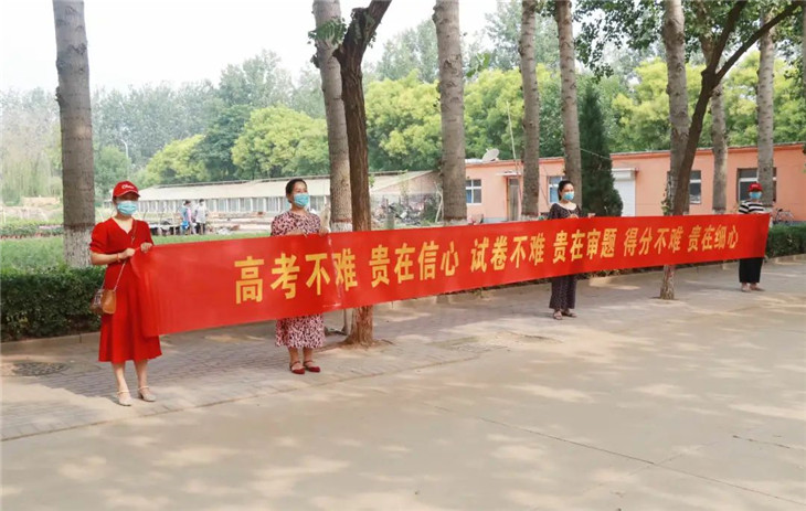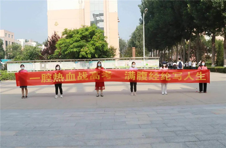 “沉着冷静,春华秋实无悬念;灵活机敏,妙笔生花有佳音”“一腔热血战高考,满腹经纶写人生”“风华正茂常怀吞吴志,金榜秀名再跃凌云阁”等加油鼓劲儿的标语横幅,是老师们对学生的最美祝福。