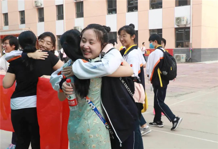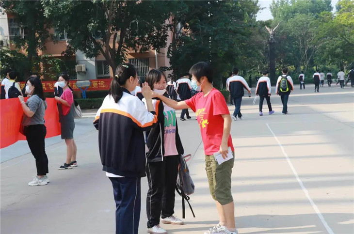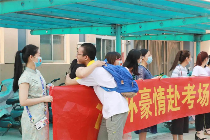 面对即将到来的考试,老师借你好运,给你必胜的力量。拥抱、握手、击掌鼓励……师长们把祝福都融进了这些暖心的举动里!