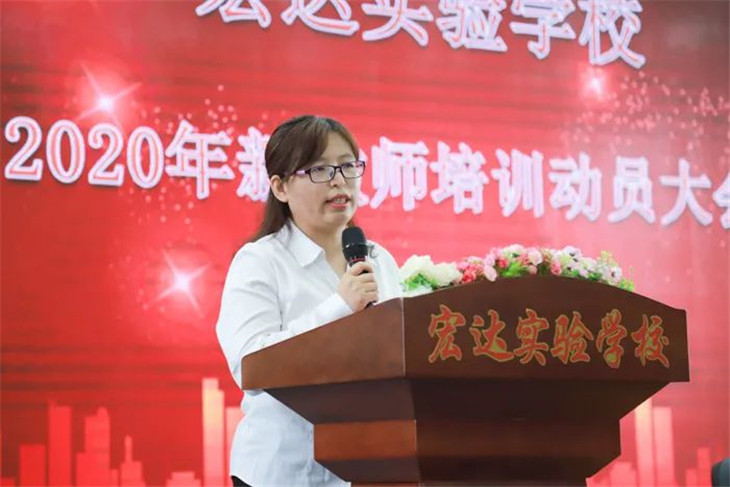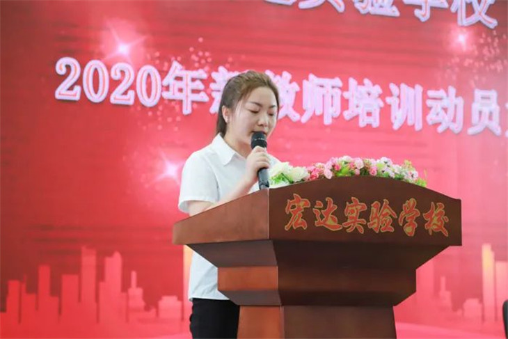 新教师代表袁艳丽老师表示新老师们一定会秉承“为人正,为学勤,为业精”的校训理念,以饱满的工作热情和昂扬的精神状态,努力进取,为宏达实验创造新的辉煌。