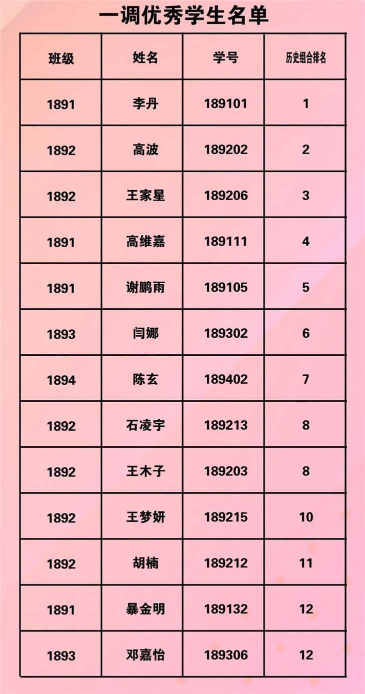 历史组合优秀学生