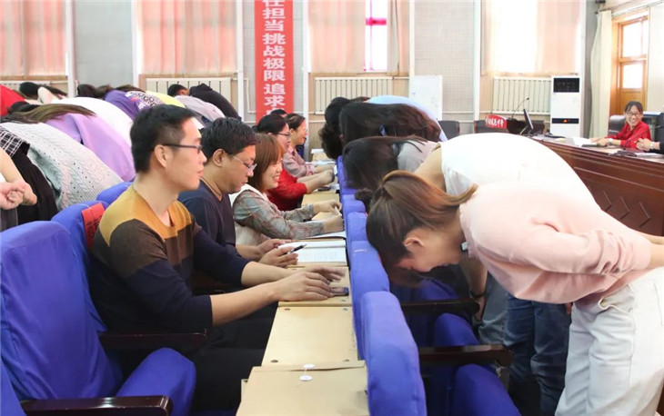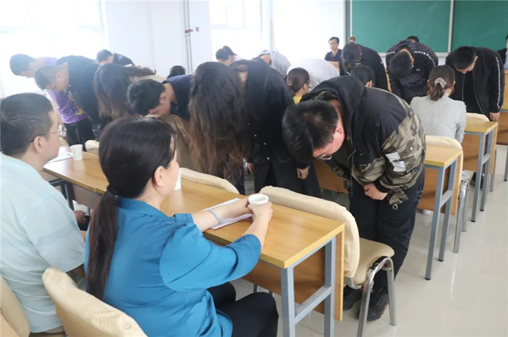 拜师会的正式开始,我校青年教师纷纷起立,向师傅深深三鞠躬,并为师傅奉茶,与师傅握手,表明对师傅的敬重和与师傅精诚合作、共同进步的决心。