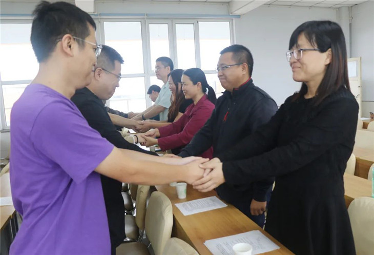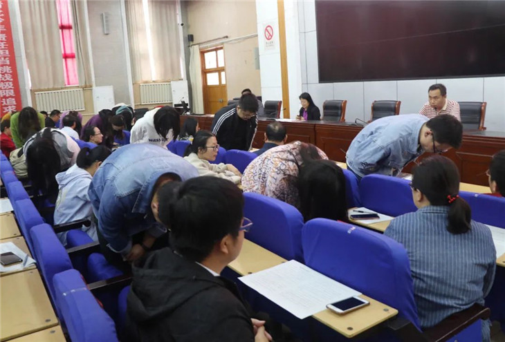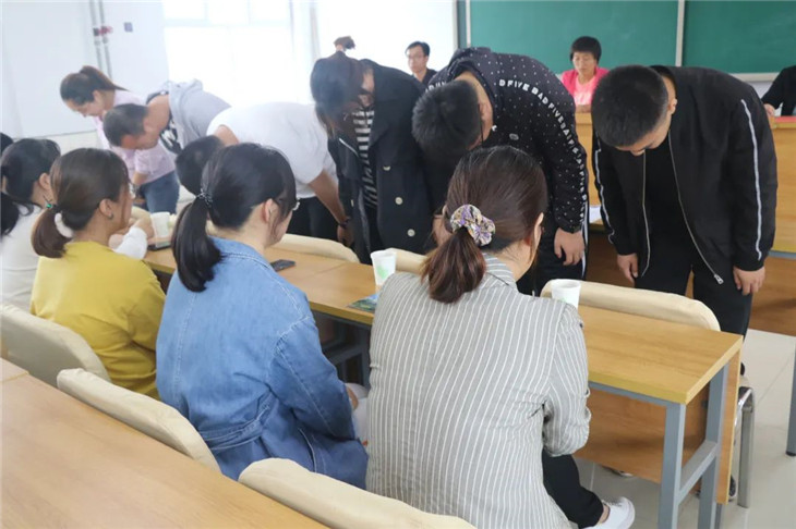 青年教师代表也上台表明了自己向师傅虚心求教的决心。在今后必定会刻苦学习、勤学多问,认真听好师傅的每一堂课,不断提高自身业务水平和教学素质,为自己和师傅争光。