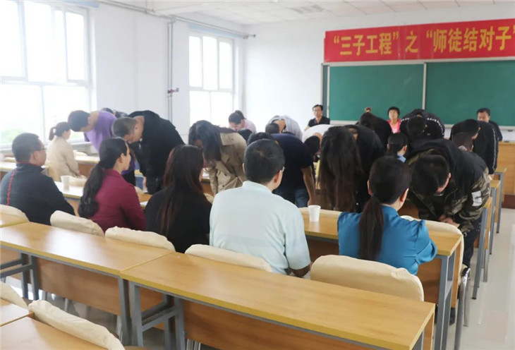 为优化我校师资队伍,充分发挥骨干教师的“传、帮、带”作用,促进青年教师快速、健康成长,打造教师交流互动的平台,推动学校教育教学质量进一步提高,我校特制定“以老带新,以新促老,师徒结对,共同提高”的青年教师培养“三子”工程活动方案,近日,我校各年级开展青年教师拜师会,一同见证徒弟拜师、师徒签约的神圣时刻。