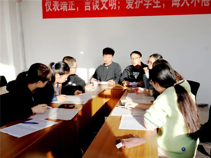 全体教师参加会议,会议上,班主任们对照班级成绩表分析本班的优势和不足,并与任课老师进行沟通交流,随后结合近期班级学习的状态,明确班务工作的重点及班级管理目标。
