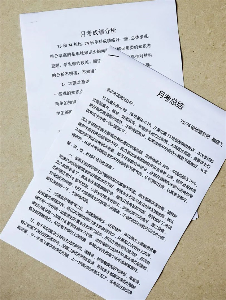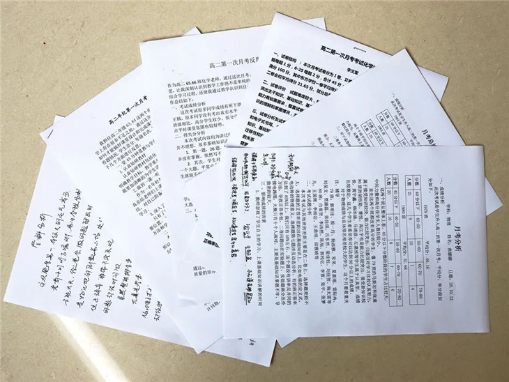 各科任课老师根据月考成绩进行分析,思考在备课、上课、学生管理、学生辅导等方面影响成绩的因素,并制定下一阶段可行性的教学措施以提高个人成绩。