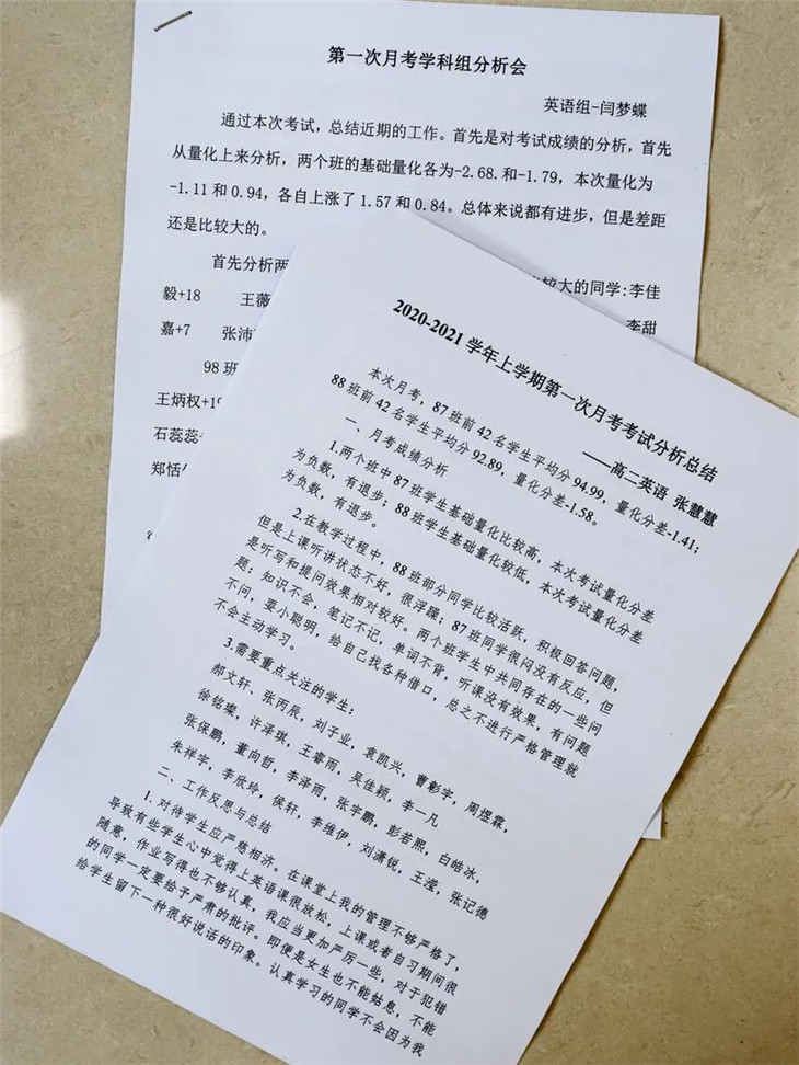 第一次月考已经结束了,本周高二年级进行了班级分析会,主要分为两大方面,一是以教学组为单位召开班级考试分析会,分析月考成绩,二是以各学科组为单位,召开学科组考试分析会。