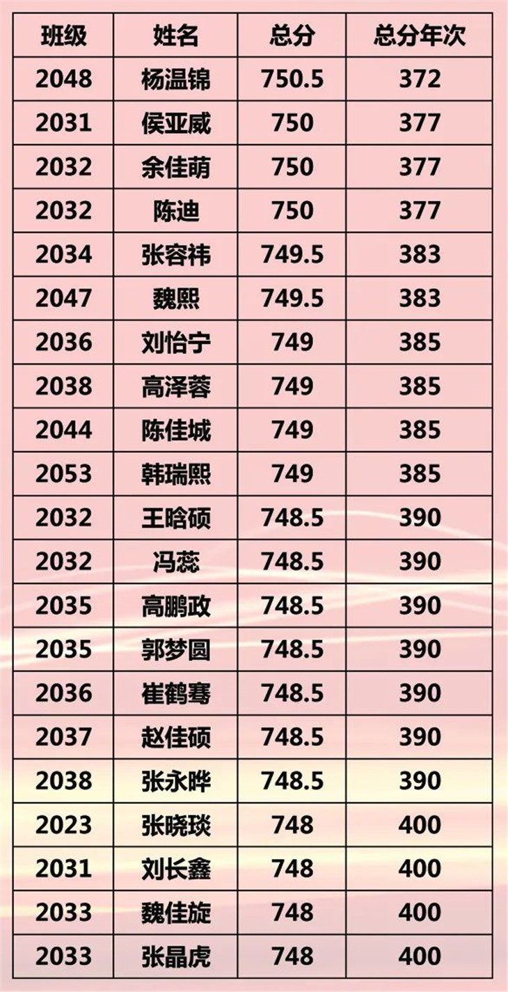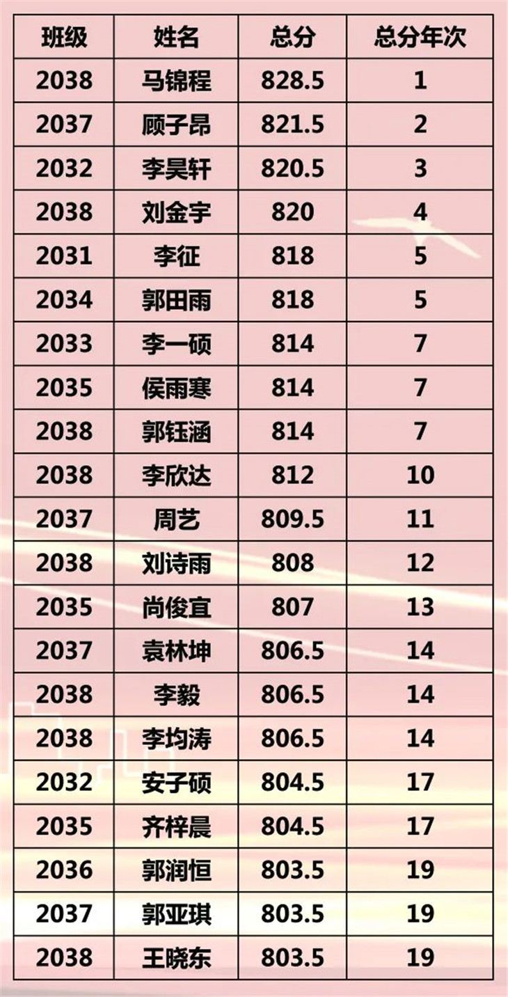 新鲜出炉!我校高一年级第一次月考光荣榜