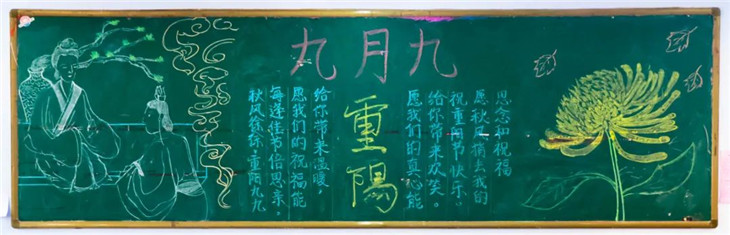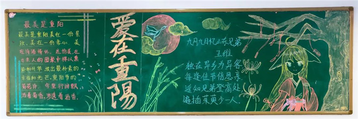 高二年级的小可爱们纷纷行动起来,向老师“建言献策”,力争绘制出一幅最美的“九九重阳黑板报”。下面,让我们一起来看看高二年级学生的倾心之作吧~