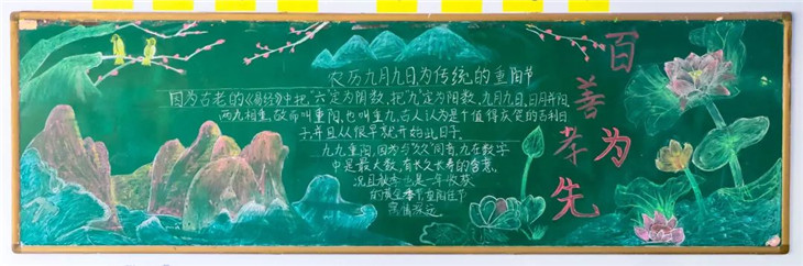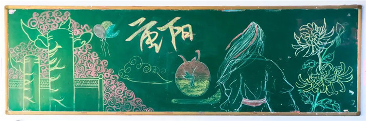 我校高二年级特举办“重阳节”主题黑板报评比活动。