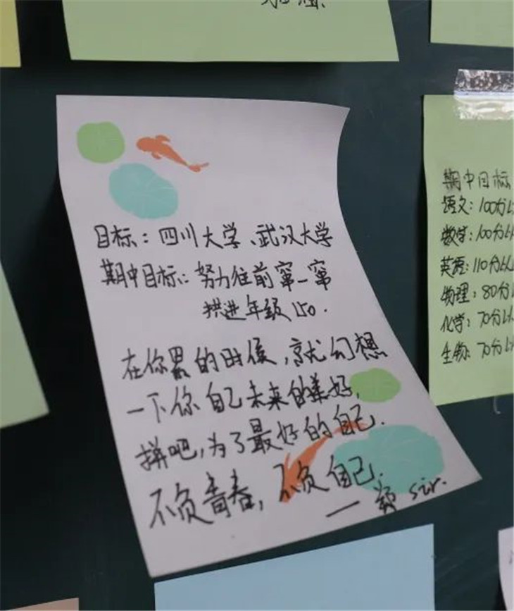 期中考试,是学习的中点,不是终点。每个人都应有自己的小目标,每次进步一点点,循序渐进,稳扎稳打,成绩慢慢提高上来。我们可爱的同们在黑板报上贴满了自己的小目标,为之感动,也为之欣慰,努力吧!奋斗吧!
