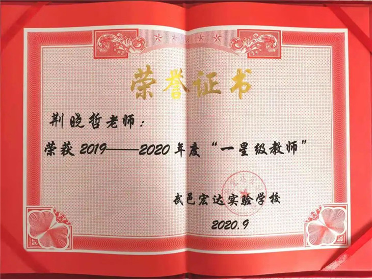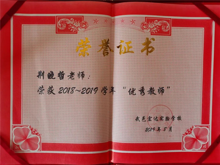 一分耕耘,一分收获。荆老师任教三年来获得了"优秀教师""优秀师徒""先进教职工""教科研先进个人""一星级教师"等荣誉。