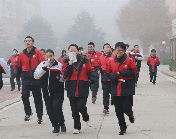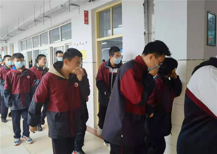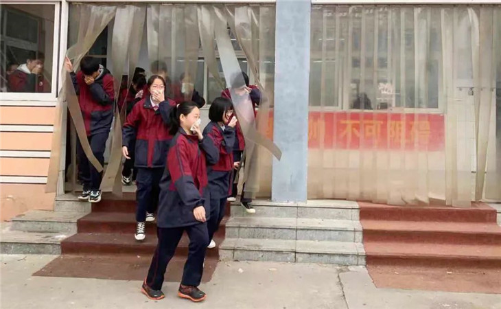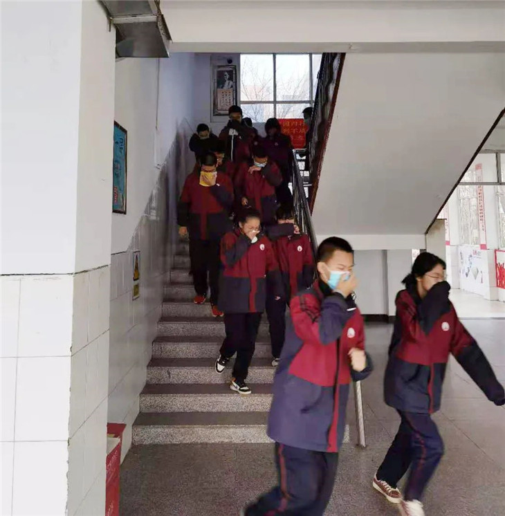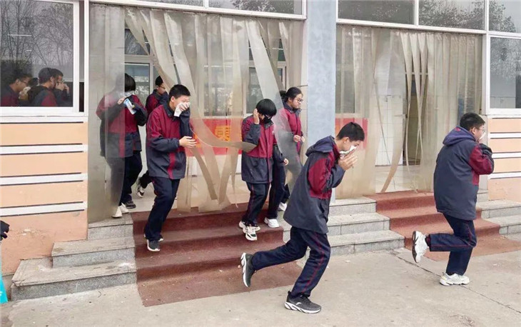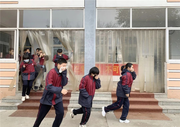 随着演练信号的发布,教学楼突发火灾。被困学生捂住口、鼻,单列、靠右沿楼道有序撤离。撤离过程中,班主任、值班教师组织有序,学生快速按照规定路线疏散,整个演练过程秩序井然。