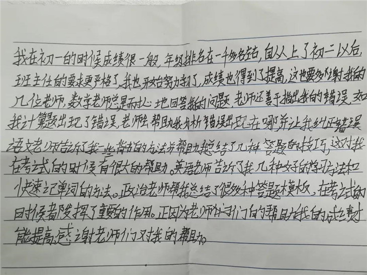 “我的进步,离不开各位老师对我的帮助!”于占霖同学在初一年级时,学习成绩处在中等位置,但一直都没有突破。然而,在进入初二以后的两次考试中,于占霖同学的成绩均名列前茅。