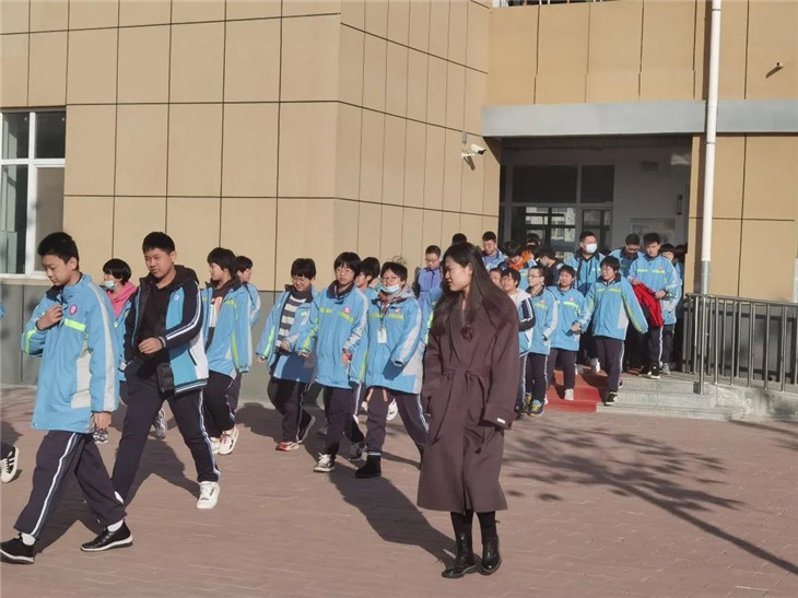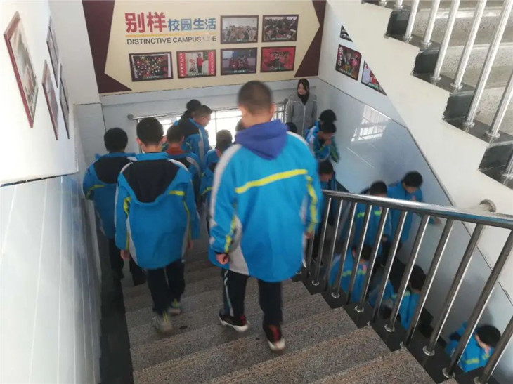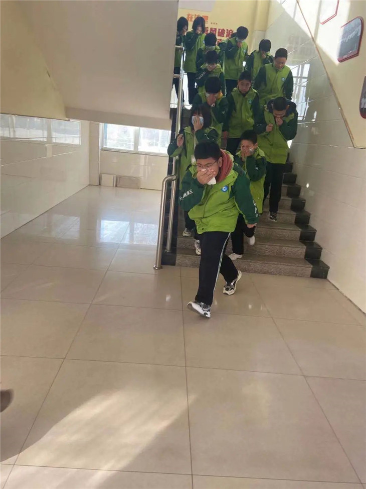 各楼道、路口疏散组负责人到达指定地点。随着警笛声响起,在各班教师带领下,学生用手捂住口鼻,弯着腰小步快走,沿着预定的疏散路线,快速、有序地撤离至安全地带。随后,各班班主任迅速整理队伍,清点学生人数。整个疏散过程有序进行,人人各尽其责,配合默契,有条不紊。