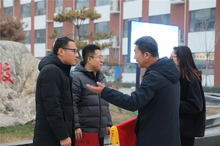 级部主任吕小杰与张老师共同接待了学生家长,并与学生家长合影。