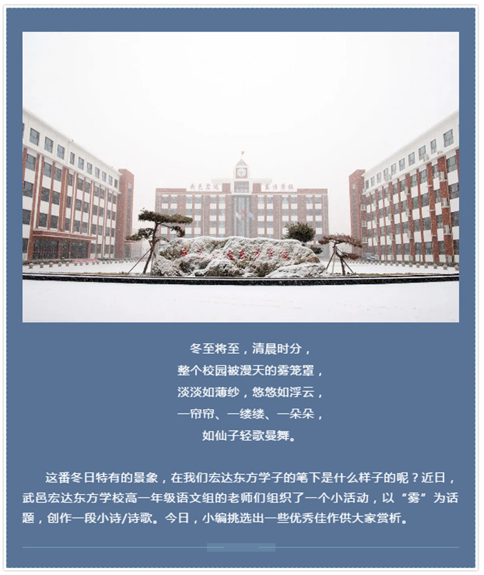 宏达东方学校高一“冬日《雾》语”小诗创作集锦(二)