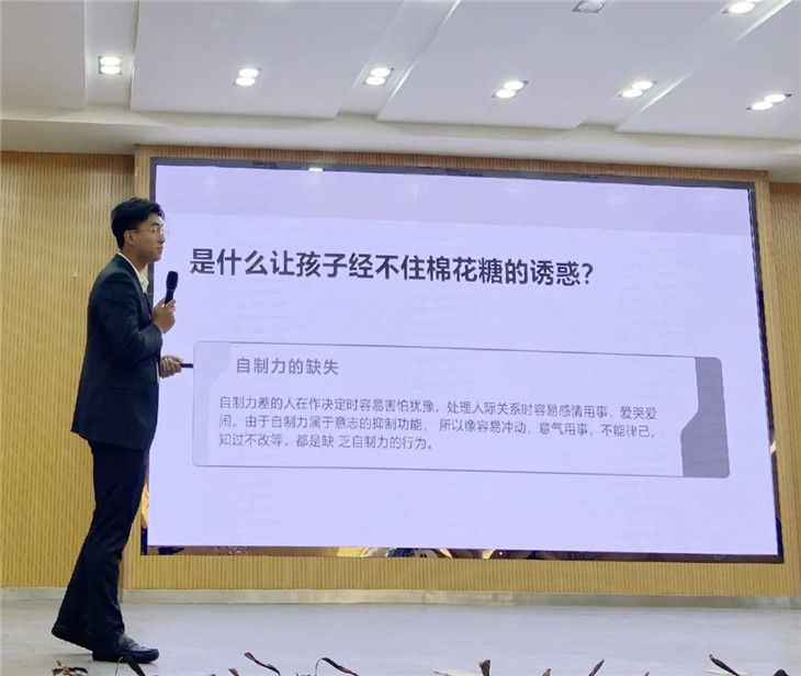 班会首先由视频《棉花糖的诱惑》展开,面对眼前的诱惑,能控制好自己心态的人,才能实现更大的目标。随后,董老师向大家提出一系列问题,先让同学们自主思考,后一一解答。