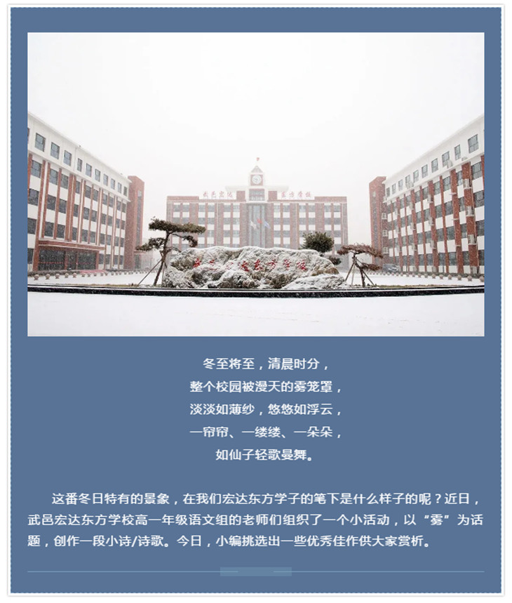 诗海徜徉┃宏达东方学校高一“冬日《雾》语”小诗创作集锦(三)