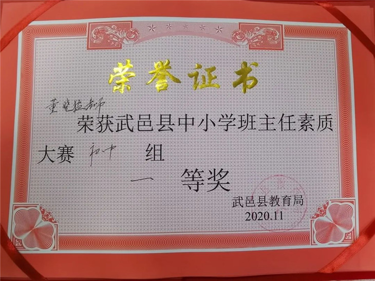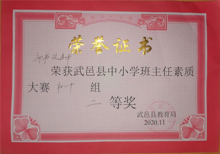 郭书双老师荣获武邑县班主任素质大赛二等奖;