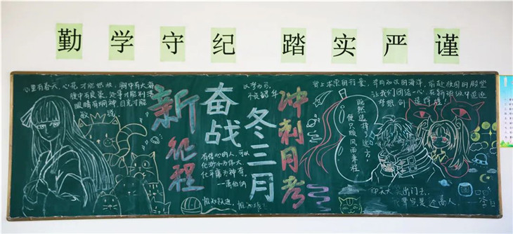 板报文化是校园文化的重要组成部分,为进一步加强校园文化建设,激发师生奋战冬三月的士气,武邑宏达东方学校高一年级开展了以“奋战冬三月 全力冲月考”为主题的板报评比活动。