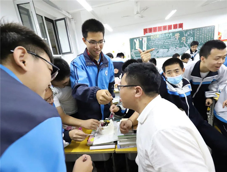 段兆宇老师是今年9月份孩子升入高二时新接班的班主任老师。每天天还没有亮,段老师就和孩子们一起跑操、早读,还经常把孩子们的学习情况通过照片、视频的形式,发送到班级群里。这些照片和视频让家长们及时了解孩子们的身心状态,也给了家长心理上极大的慰藉。白天,段老师和孩子们一起上课学习,了解学生的情况及时给予引导和帮助。晚上,当孩子们都已入睡,段老师才顶着星光下班。
