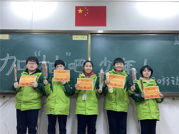 第一次月考之后,对优秀、进步大的学生进行了表彰,让学生向以上学生努力看齐.。在班会上,为了缓解学生的压力,我们一起进行团结的小游戏,学生们不仅乐在其中,而且还增进了学生的团结与友谊。