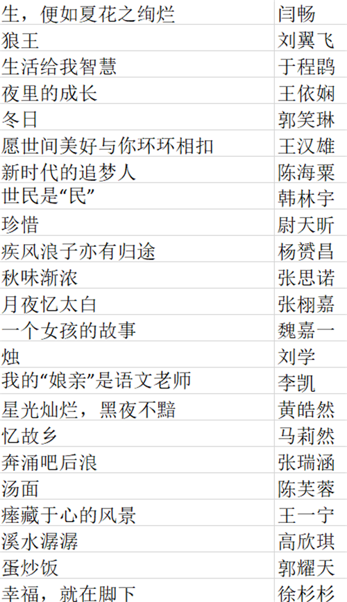 近日,由教育部批准、中国当代文学研究会主办、中国当代文学研究会校园文学委员会和中国少年儿童新闻出版总社《中学生》杂志社承办的第十八届“叶圣陶杯”全国中学生新作文大赛初赛获奖名单揭晓。